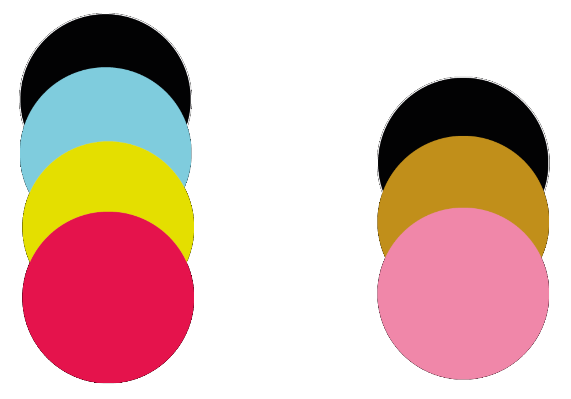 Impression en trichromie — trois encres uniquement (noir + rose + doré), en distinction avec la quadrichromie classique quatre couleurs.