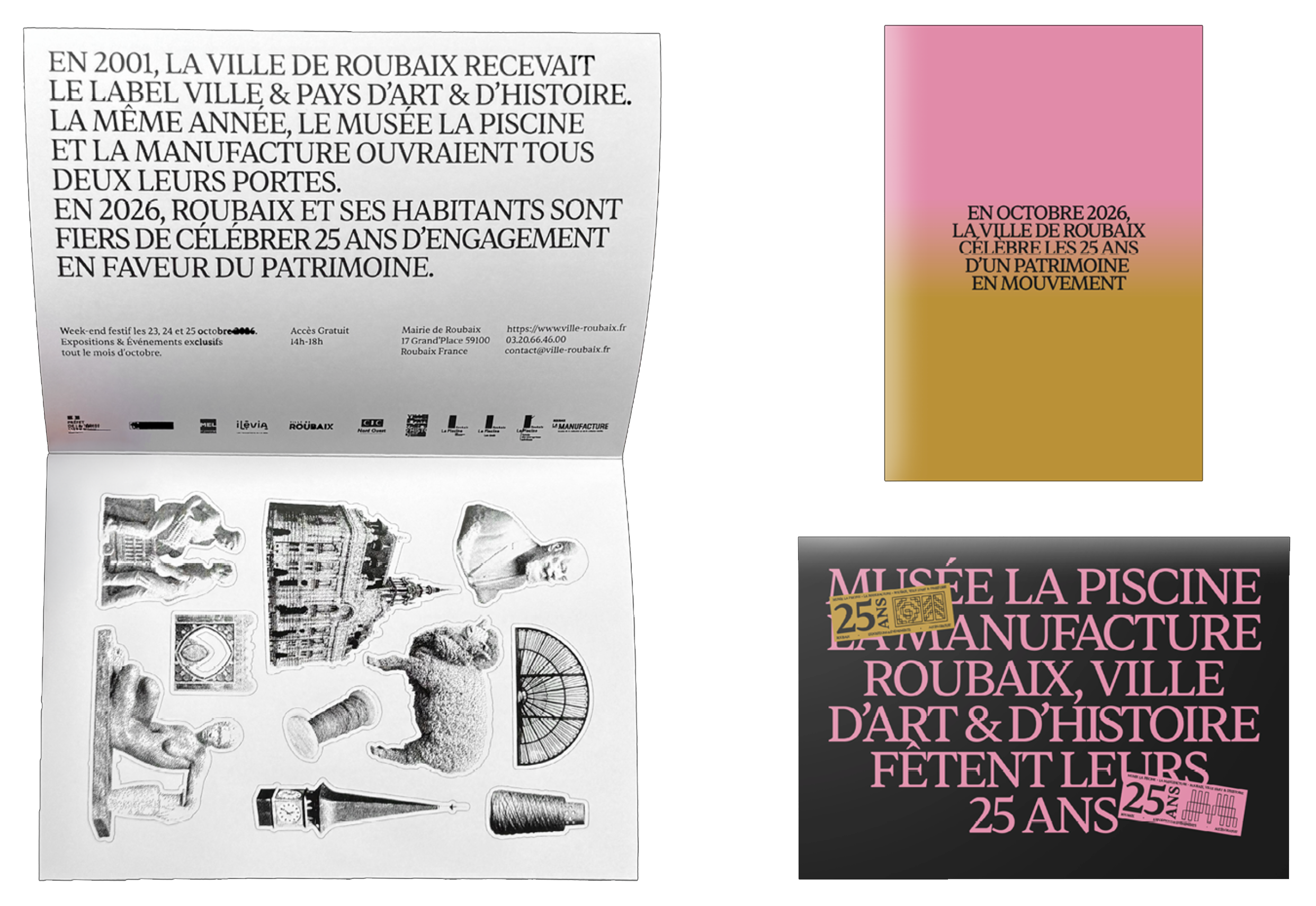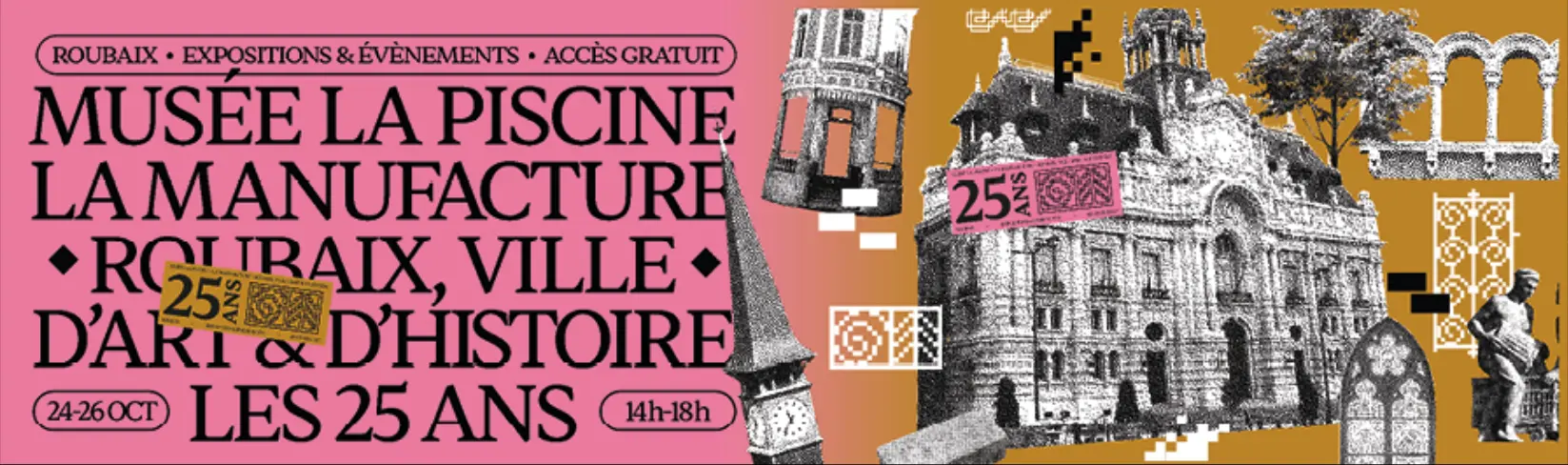Notre identité visuelle pour les 25 ans du musée La Piscine, de la Manufacture et de Roubaix, ville d'Art &