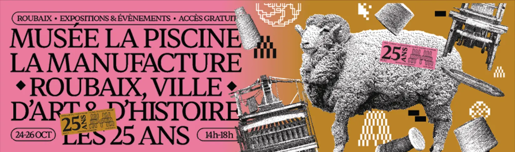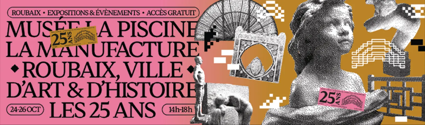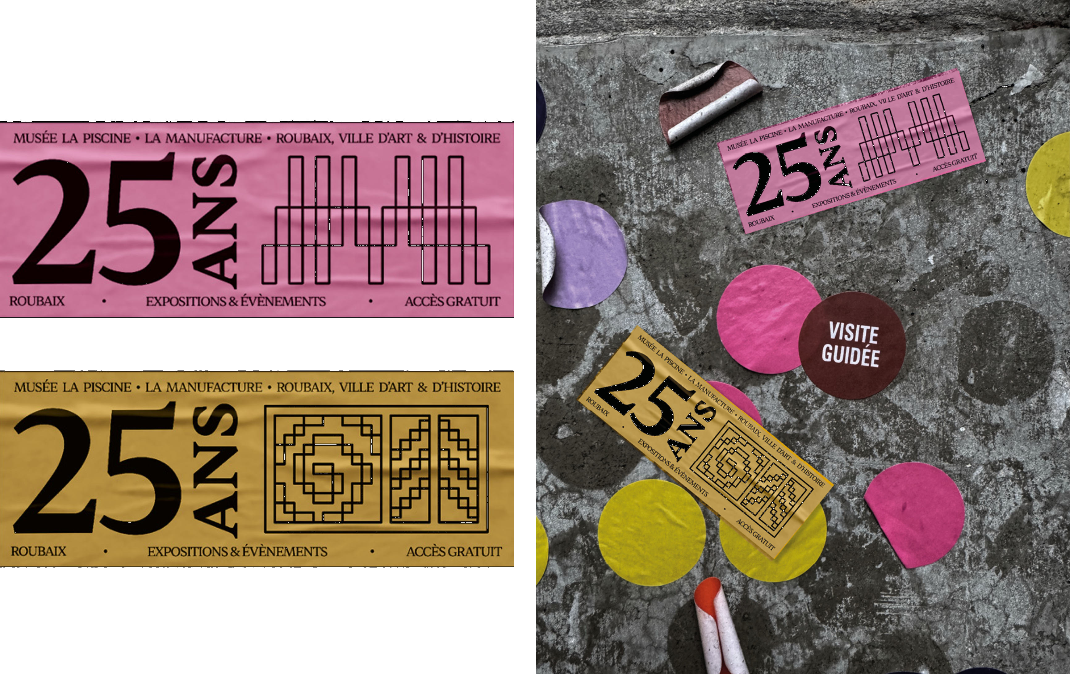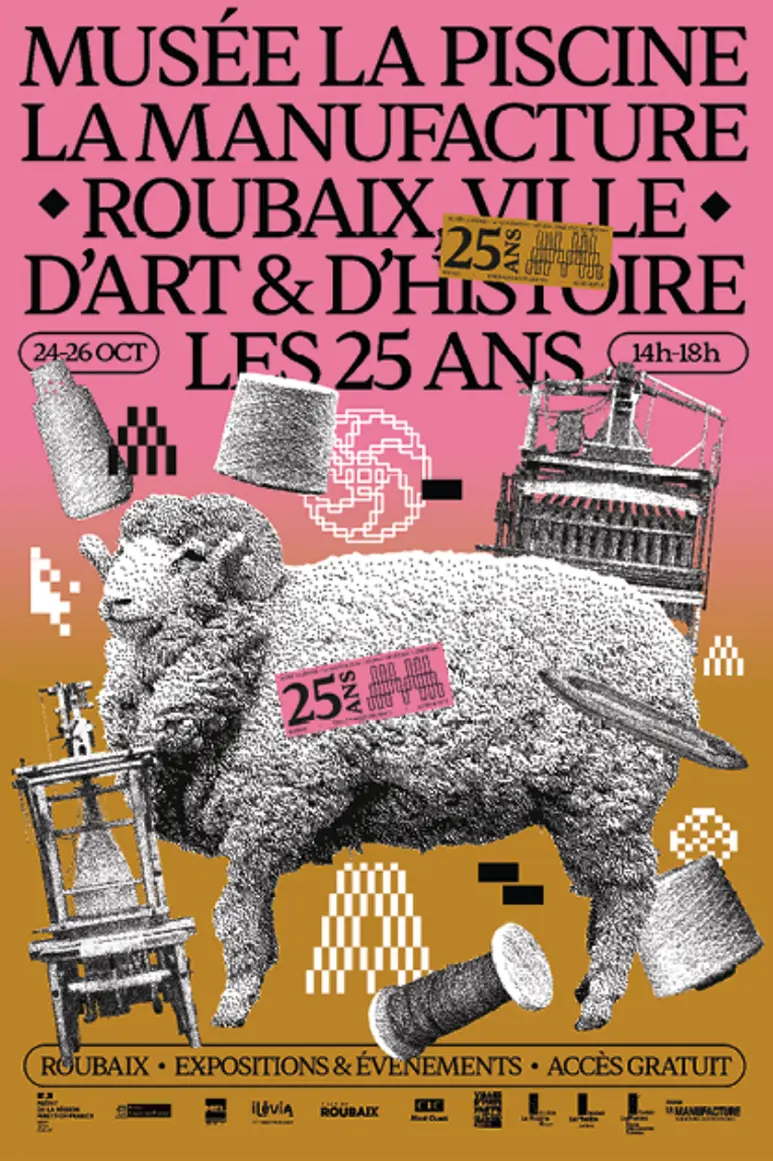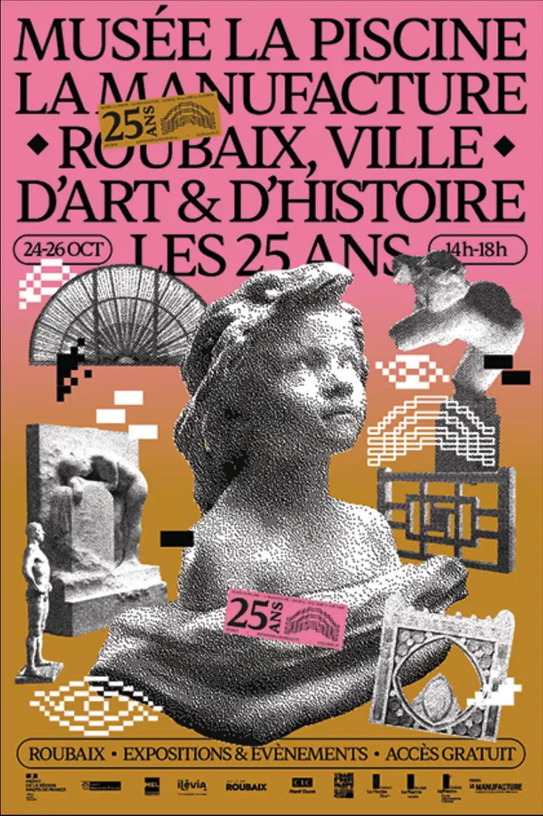 Notre identité visuelle pour les 25 ans du musée La Piscine, de la Manufacture et de Roubaix, ville d'Art &